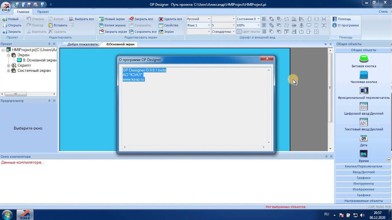 Элементы интерфейса OP Designer