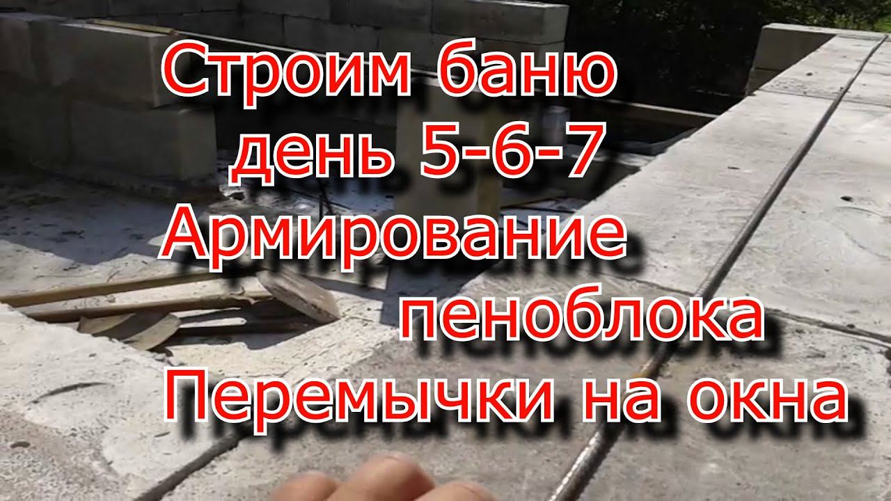 Баня своими руками. Армирование пеноблока, Оконные перемычки. День 5-6-7