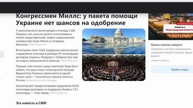 Конгрессмен Миллс_ у пакета помощи Украине нет шансов на одобрение