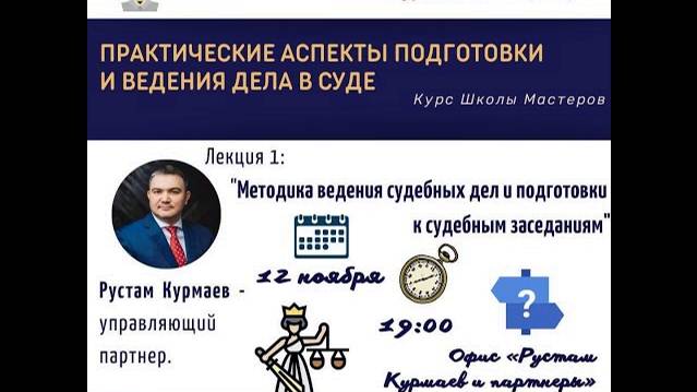 🎓Первое занятие в рамках курса «Практические аспекты подготовки и ведения дела в суде» от юридической фирмы «Рустам Курмаев и Партнеры». 📚Тема лекции: «Методика ведения судебных дел и подготовки к судебным заседаниям». 🎙Кто читает? Рустам Курмаев - управляющий партнёр; специализируется в области разрешения коммерческих споров, споров в сфере недвижимости и строительства, корпоративных споров, а также споров в сфере уголовно-правовой защиты бизнеса.