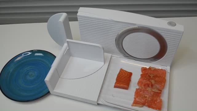 ломтерезка EUREL режем рыбу (форель подкопченная)