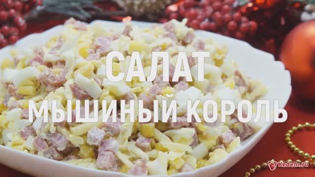 Вкусный, простой в приготовлении и яркий новогодний салат, который легко и быстро можно приготовить на праздничный стол. Еще больше рецептов смотрите на нашем сайте https://kedem.ru/recepty-s-foto/ Время приготовления: 20 минут. Ингредиенты: 200 г полукопчёной колбасы, 100 г сыра, 100 г консервированной кукурузы, 3 яйца, 2 ст. ложки майонеза. Приготовление: 1. 3 яйца отварить вкрутую, остудить и очистить. 2. В миске смешать кубиками нерезаные 3 отварных яйца и 200 грамм полукопченой колбасы. 3. Добавить 100 грамм тертого сыра и 100 грамм консервированной кукурузы. 4. Заправить 2 столовыми ложками майонеза и перемешать. 5. Выложить в салатницу. 6. Салат «Мышиный король» готов. Можно подавать к столу. Приятного аппетита! #кулинарныйэдем #еда #рецепты #вкусно #кулинария #рецепт #чтоприготовить #новыйгод #новогоднийстол #рождество