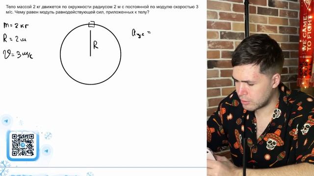Тело массой 2 кг движется по окружности радиусом 2 м с постоянной по модулю скоростью 3 - №20681