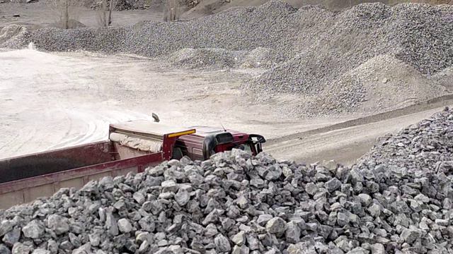 Спасибо водителю за приветствие! Авто едет за очередным рейсом на ДСФ. Груз - щебень фракции 40×70. АТЦ ООО "Рускальк". 02.04.24г. 14:15.