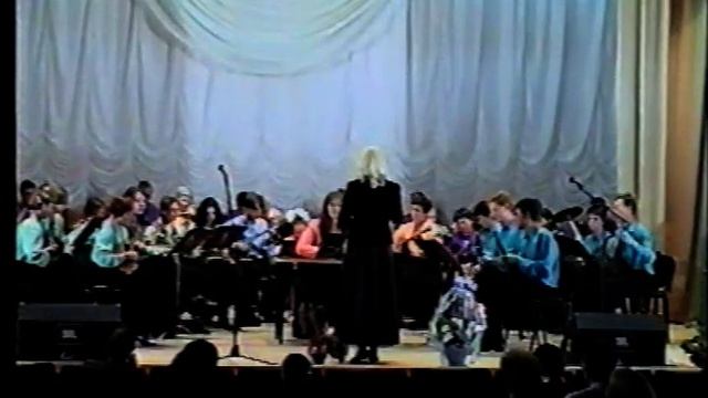 Архив Народного русского оркестра ДДЮТ. Концерт в Севастопольском филиале Московского государственного университета. 2002 год. Солисты: заслуженный артист России, солист ансамбля песни и пляски - Евгений Устинов и солистка фольклорного ансамбля "Калинка" ДДЮТ - Наталья Сафаргалиева.