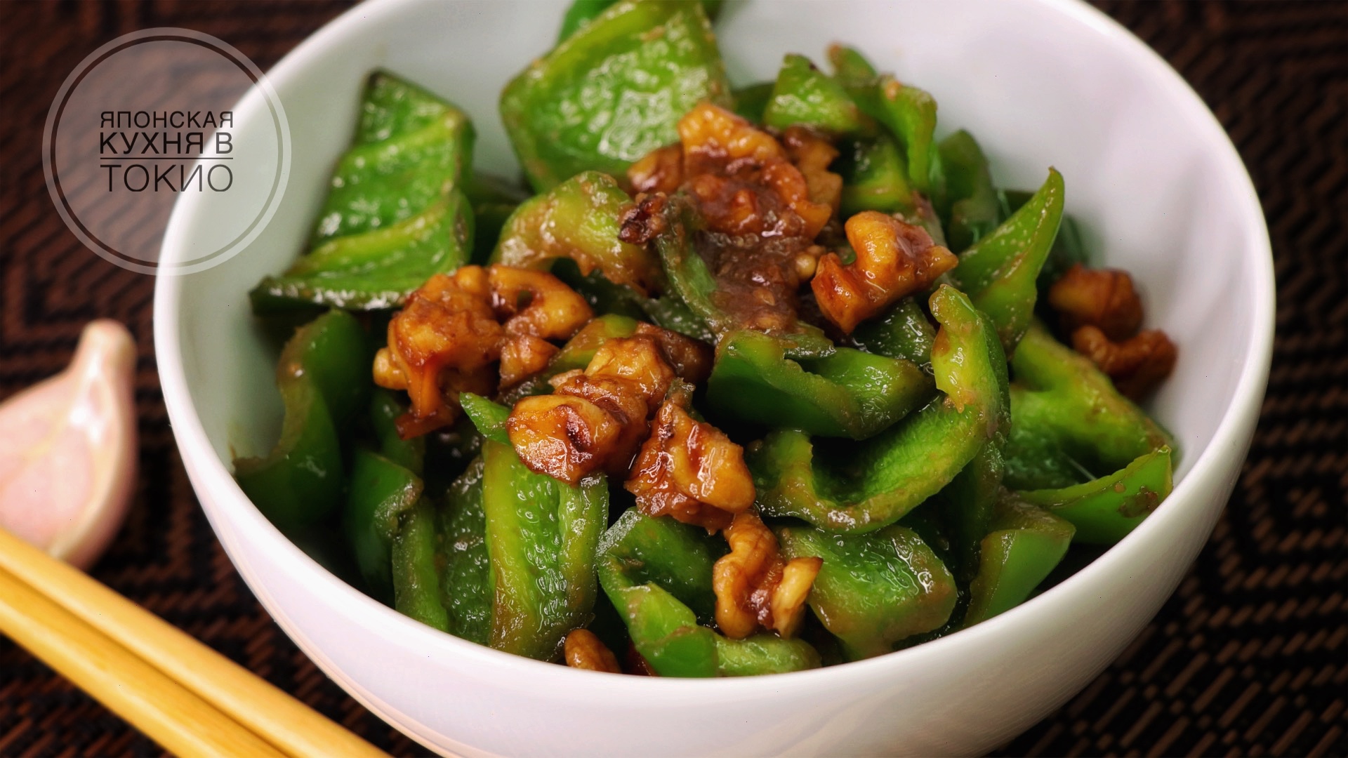 Простая закуска из зеленого перца, грецкого ореха и пасты Мисо. Японская кухня - рецепты.
