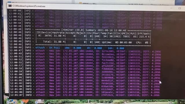 RTX 3070 GameRock LHR Nbminer 39.0 Драйвера 471.11 На эфире 32 Mhs