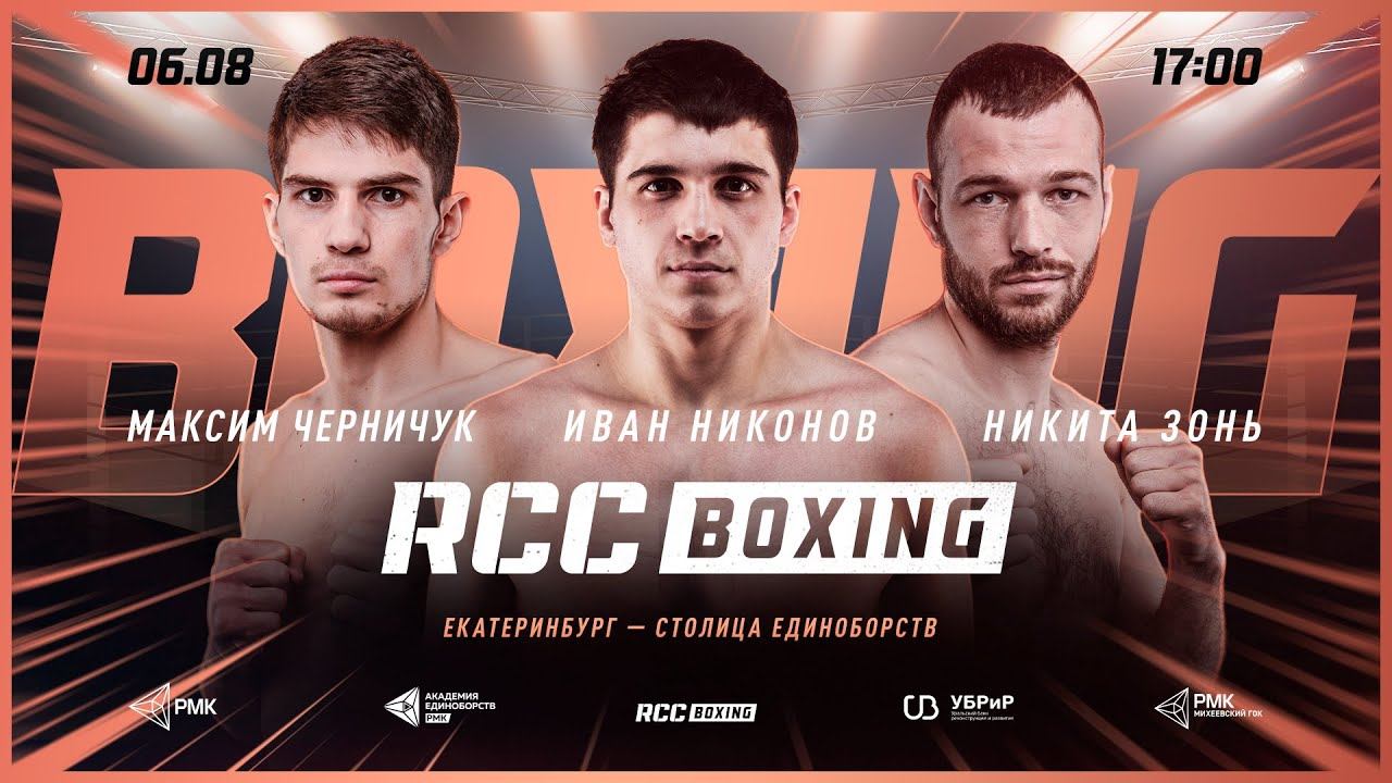 Сегодня Екатеринбург вновь примет Вечер бокса от RCC Boxing Promotions Шоу возглавит турнир поединок Ивана Никонова и Виктора Мурашкина. 1 пара 4х3 мин, свыше 90,7 кг Ацамаз Ботоев (дебют), Нижний Тагил, Россия Александр Степанов (3-11, 2 КО), Тамбов, Россия 2 пара 4х3, свыше 90,7 кг Шохжахон Абдуллаев (дебют), Ташкент, Узбекистан Герман Скобенко (5-12-2, 2 КО), Макеевка 3 пара 6х3 мин, свыше 90,7 кг Давлат Болтаев (1-0, 1 КО), Москва, Россия Виктор Чварков (2-7), Гомель, Республика Беларусь 4 пара 4х3 мин, свыше 90,7 кг Рамиль Байгин (дебют), Нижний Тагил, Россия Андрей Печенкин (дебют), Видное, Россия 5 пара 8х3 мин, до 76,2 кг Никита Зонь (4-0, 3 КО), Красноярск, Россия Одилжон Аслонов (2-0, 1 КО), Бухара, Узбекистан 6 пара 8х3 мин, до 66,7 кг Максим Черничук (3-0, 1 КО), Дмитров, Россия Вадим Лубсанов (4-0, 1 КО), Улан-Удэ, Россия 7 пара 8х3 мин, до 61,2 кг Баходур Усмонов (2-0), Душанбе, Таджикистан Тигран Узлян (5-0, 3 КО), Адлер, Россия 8 пара 8х3 мин, до 61,2 кг Иса Чаниев (15-4, 7 КО), Назрань, Россия Вячеслав Гусев (25-8, 8 КО), Северодвинск, Россия 9 пара 8х3 мин, до 69,9 кг Иван Никонов (6-1, 2 КО), Алапаевск, Россия Виктор Мурашкин (4-3, 3 КО), Борисов, Республика Беларусь Организатор турнира RCC Boxing Promotions https://vk.com/rccboxing https://www.instagram.com/rccboxing/ https://www.facebook.com/rccboxing/ https://twitter.com/rcc_sport http://rccboxing.pro/ Турнир проходит в Екатеринбурге в Академии единоборств РМК https://vk.com/rcc_academy instagram: https://www.instagram.com/rcc_academy/ facebook: https://www.facebook.com/academy.rcc/ twitter: https://twitter.com/rcc_sport https://rcc-sport.ru/ #RCC #РМК #RCCBOXING