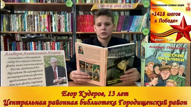 В год празднования 80-летия Победы в Великой Отечественной войне Пензенская областная библиотека для детей и юношества инициирует проведение региональной сетевой акции «1418 шагов к Победе». Она проводится с целью формирования и развития у детей и молодежи чувства патриотизма, сопричастности к подвигам советского народа. Все представленные видеосюжеты составят Виртуальный дневник памяти.
