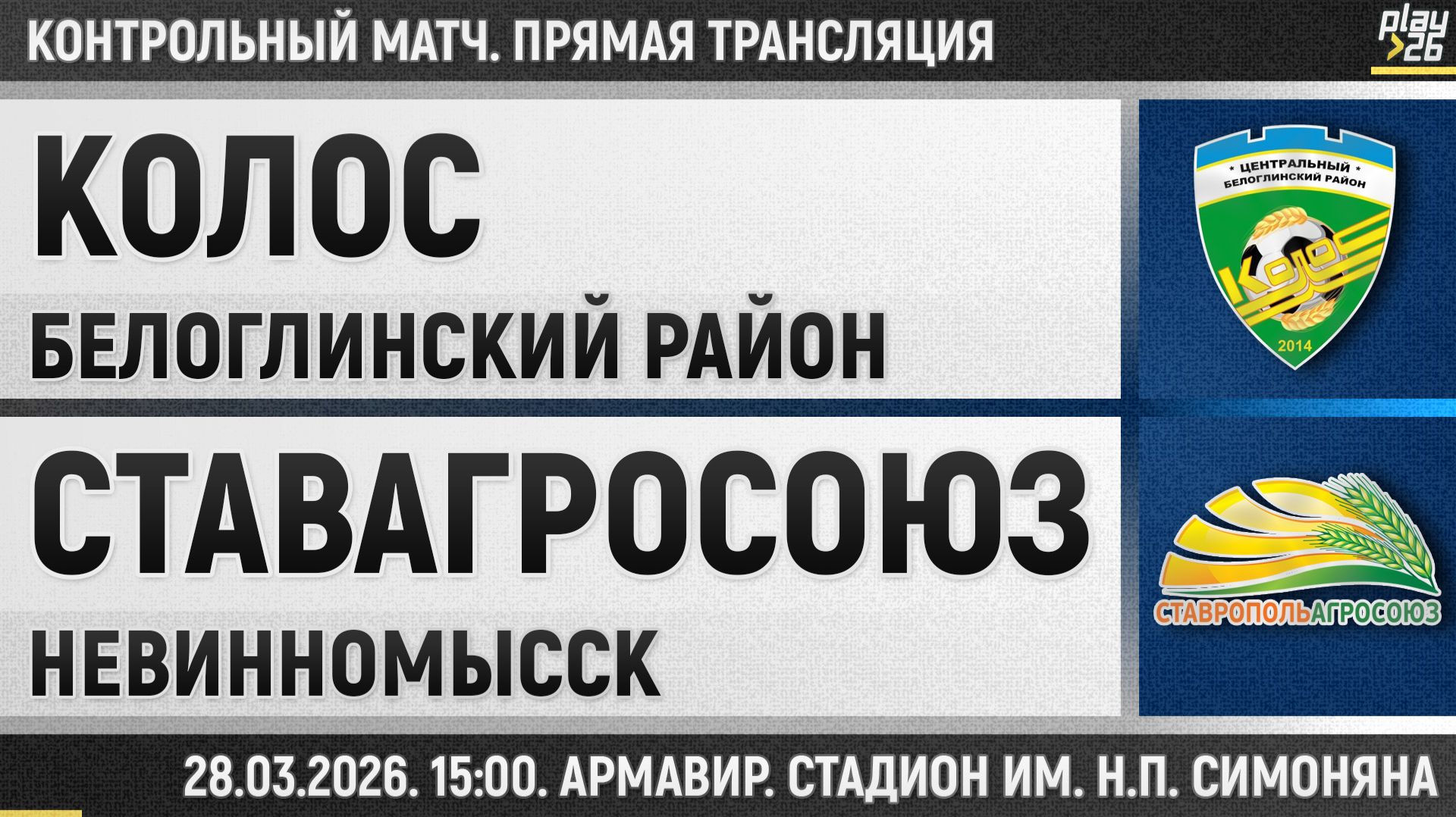 "Колос" Белоглинский район - "СтавропольАгроСоюз" Невинномысск (28.03.2026) Запись матча