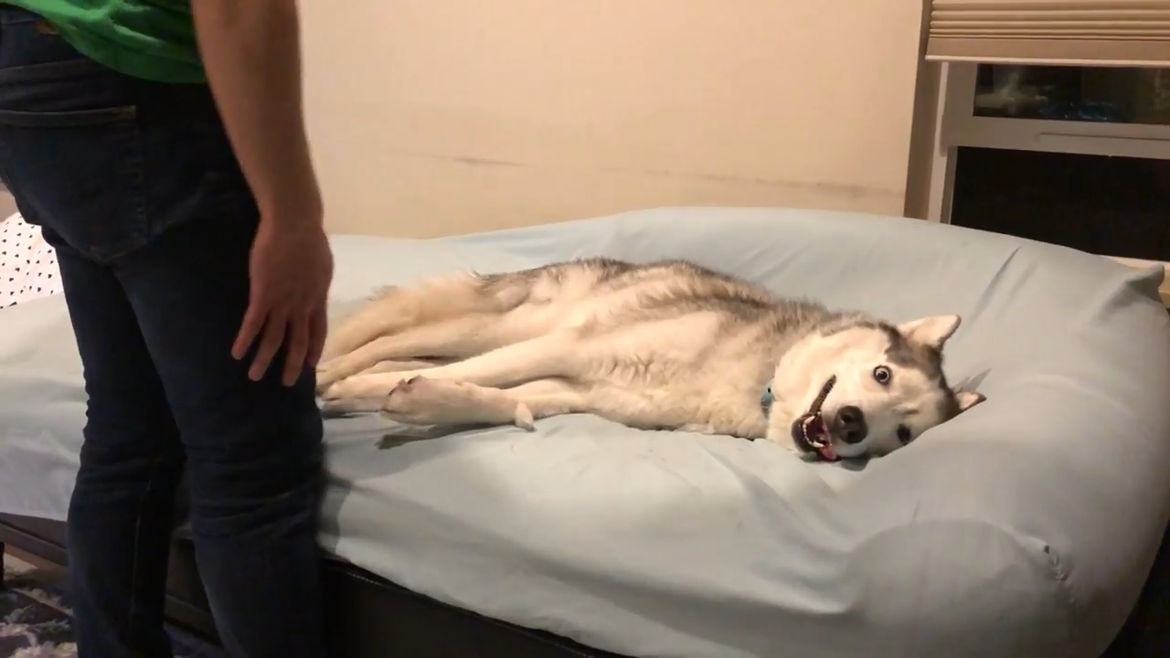 Сибирский хаски по имени "Хиро" находится дома на диване после поздней прогулки и не хочет вставать. #хаски #собака #милота #релакс
