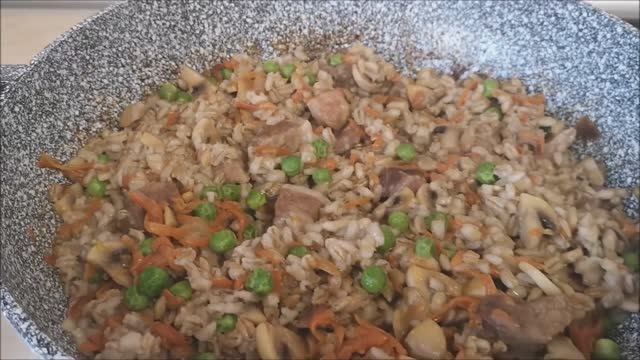Телеграмм (telegram) https://t.me/cookingwithLOVE1 VK сообщество: https://vk.com/club225549357 ГОТОВИМ С ЛЮБОВЬЮ RUTUBE: https://rutube.ru/channel/29858979/ Перловая каша рецепт с мясом , грибами и овощами. Перловка рецепт каши. Всё готовим дома 1 стакан перловой каши (200 гр) заливаем 1 стаканом воды на ночь, потом заливаем 4 стаканами воды и варим. 400 гр мяса 200 гр грибов 1 луковица 100 гр зеленого горошка 1 морковь соль, перец по вкусу