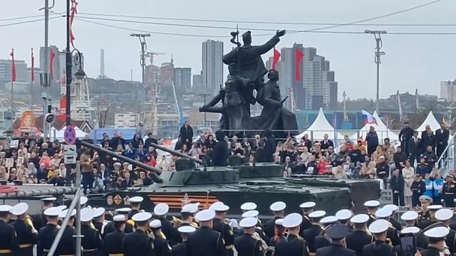 В параде приняли участие подразделения Владивостокского гарнизона, офицеры и моряки Тихоокеанского флота, сотрудники силовых структур, спасатели, курсанты. Смотр военной техники открыли танк Т-34 и машина реактивной артиллерии «Катюша». Подписаться на нас в Telegram: https://t.me/stormdaily Наш сайт: https://dailystorm.ru/