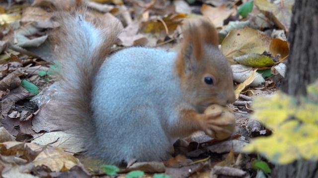 Бельчонок тренируется есть грецкие орехи