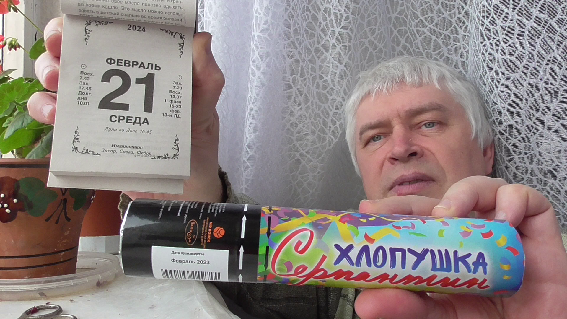 Сегодня 21 февраля 2024 год. У меня хлопушка. Блестящие бумажки в хлопушке