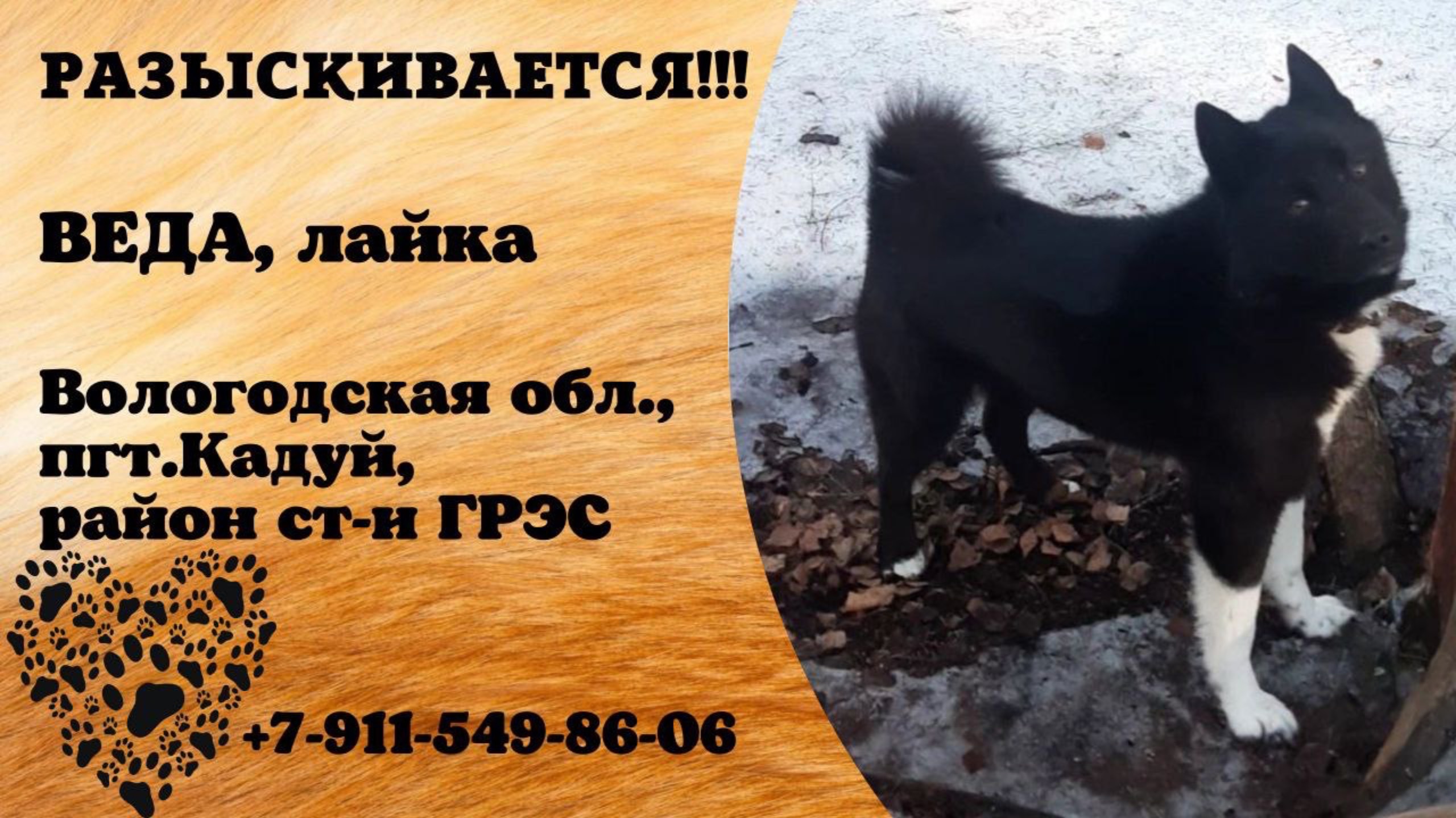 Пропала собака! ВЕДА, лайка. Вологодская обл., пгт.Кадуй.