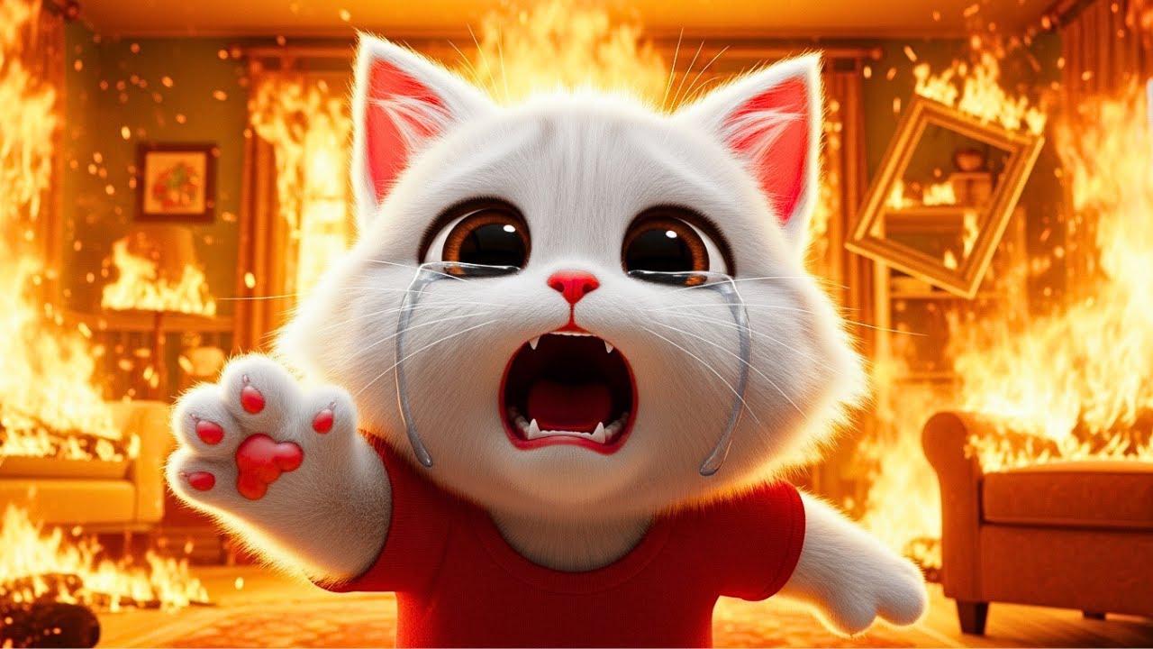 Мультики для детей. Котик и пожар, котик играет с огнем, мультфильм для детей