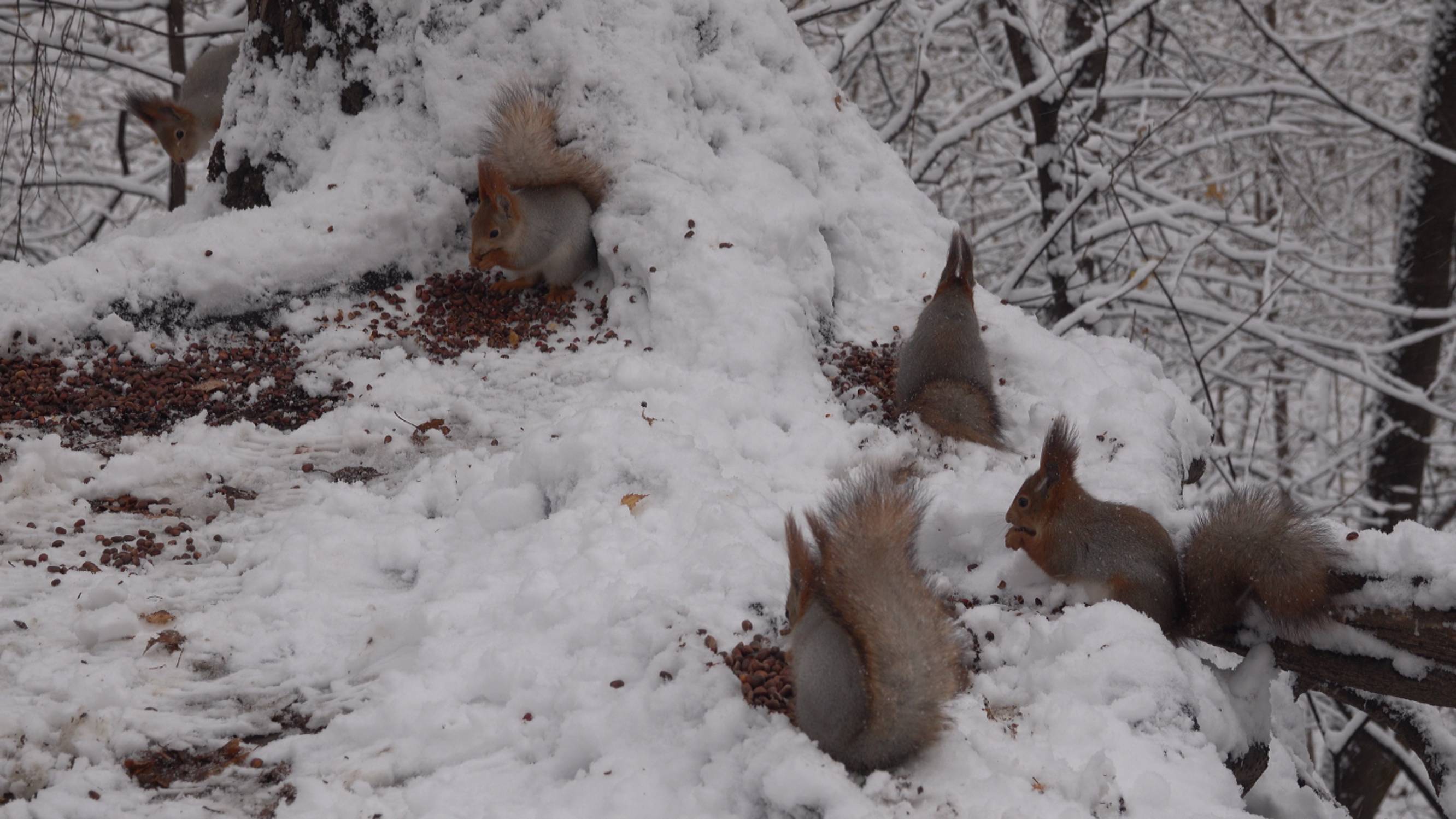 Белки в снегопад. Зарисовка