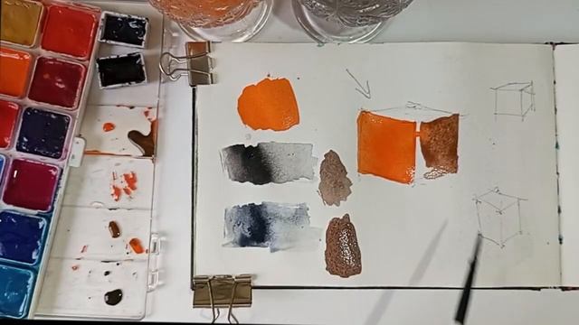 Продолжаю упражнение с оранжевым кубиком. В предыдущей части мы рисовали объём, используя всего один цвет и меняя только тон, от светлого к тёмному. Сейчас акварель полностью высохла, и хорошо видно, как бумага “съедает” часть пигмента, поэтому цвет всегда выглядит иначе, чем по-сырому. Сегодня я разберу другой способ: изменение цвета, а не тона. Частая ошибка — добавить к оранжевому серый или чёрный, надеясь получить «тёмно-оранжевый». Но чёрный и серый — это тоже полноценные цвета, причём яркие и насыщенные. Они ведут себя в смесях непредсказуемо для логики: оранжевый + чёрный превращаются не в тёмно-оранжевый, а в коричневый. То же происходит и с серым пейна: смесь снова уходит в коричневый, но уже другого оттенка. Почему это важно? Когда вы используете разные цвета для разных граней куба, вы создаёте не тоновые отношения внутри одного цвета, а три разных цветовых плоскости. Объём читается, но общая цветовая логика объекта теряется, получается «солянка» из оттенков. Как работать аккуратнее. Если вы всё-таки хотите менять цвет, можно сделать так: свет — жёлтый или оранжево-жёлтый; основная грань — чистый оранжевый; тень — коричневый или смесь оранжевого с чёрным/серым. Важно заполнить каждую плоскость цельно, одинаковой плотностью, чтобы форма не распадалась на пятна. Как объединить цвета и сохранить объём. Сначала положите общий слой оранжевого. После высыхания добавьте жёлтый на свет и коричневый на тень, так базовый цвет будет просвечивать сквозь новые слои, и куб останется цельным по цвету. Это второй способ создания объёма: не только тон, но и работа с тремя разными, активными цветами. В следующей части третий способ решения объёма. Видео урок Как смешать и подобрать цвет для рисования осенних пейзажей https://buymeacoffee.com/galinavindalovskaia/e/482283 У меня есть серия набросков, осенние пейзажи в пасмурную погоду. Я хочу перевести их в большой формат и сделать серию в спокойной общей гамме. В чём проблема? В том, что в наборе красок, которыми я пользуюсь, есть только яркие цвета. И среди них нет мягких, приглушённых оттенков А мне нужна сразу готовая гамма, и «рецепты» смесей. Делюсь своим опытом. Если вы хотите сказать «Спасибо» https://buymeacoffee.com/galinavindalovskaia Мне приятно, что вы пользуетесь моими публикациями. Всё это - мои инвестиции, и для вас это ценно: знания, прибыль, идеи, деньги, сэкономленное время, вдохновение для бизнеса, радость или удовольствие. Вдохновил ли вас этот контент? Вы можете поддержать проект денежным пожертвованием. Никаких обязательств. Только ваше желание и выбор.