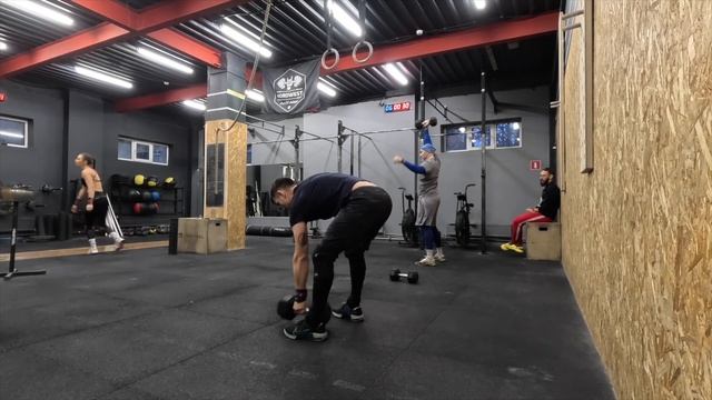 195 тренировка Навык 10ЕМОМ практика выхода на турнике Техника Каждые 90 секунд, 3 подхода: 5 взятие в стойку+швунг тнг 60% Каждые 90 секунд, 3 подхода: 2 взятие в стойку тнг+толчковый швунг тнг 80% Каждые 90 секунд, 3-5 подхода: 1 взятие в сед+толчковый швунг/ножницы 90% Каждые 120 секунд, 4 подхода: 1 взятие в стойку+с виса в сед+1 жимовой швунг+1 толчковый швунг/ножжницы тнг 90% * 60 (кг) Комплекс 4 интервала Максимум боковых берпи в отскок через гантель Максимум взятие с виса+швунг гантели одной рукой 4х5 м выпады 3 мин отдых Минимум 10 берпи, максимум 30. Смена рук каждый раунд. Минимум 8 взятие+швунг, максимум 25. Выпады сразу после взятие+швунг 30 (повторения) 30 (повторения) 30 (повторения) 30 (повторения)