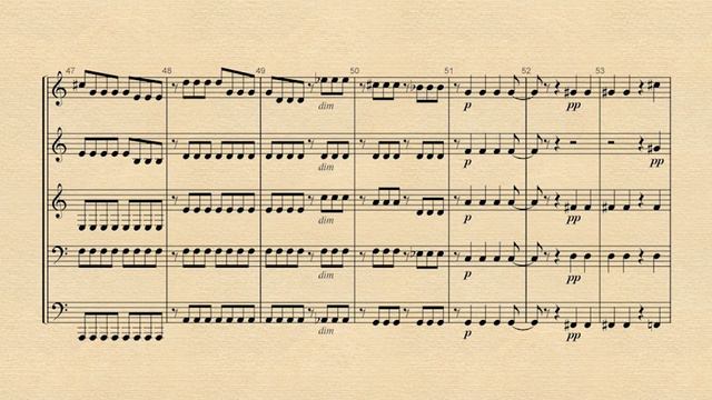 Brassquintet, 2 trombe, corno, trombone, tuba, 1985. – Sergei Zagny, sampler Ensoniq EPS-16 plus. Theremin Center, Moscow, 1993-1994. New version: Sergei Zagny, sampler Ensoniq ASR-10. Zagny Home Studio, 09.2001. === The music scores of Sergei Zagny: https://imslp.org/wiki/Category:Zagny%2C_Sergei