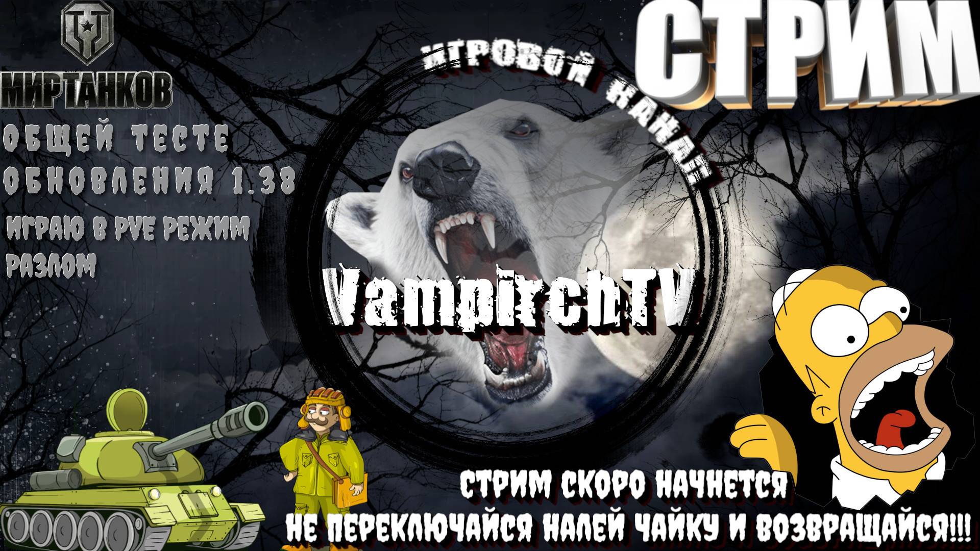⭐️Приветствую Вас Танкисты и Танкистки.⭐️ ⭐️Спасибо, что зашли на канал. Поддержи лайком, и подпиской, для тебя это не трудно, а для меня это лучший подарок!!!! 👉 ВАША ПОМОЩЬ В РАЗВИТИИ КАНАЛА✔️ https://www.donationalerts.com/r/vampirchtv 👉 boosty✔️ https://boosty.to/vampirchtvv ✔️Пришло время общих тестов версии 1.38 «По ту сторону»!✔️ 👉Друзья, вас ждёт столько всего интересного! Особое PVE-событие «Разлом», которое станет финалом историй сезона «Обратная сторона» и «Ваффентрагер: Реванш», переработка артиллерии и снарядов , обновление нескольких карт, Линия фронта на VIII уровне, Ранговые бои на VI уровне и другие новшества. 👉Используйте эту ссылку https://lstus-ru.lesta.ru/ru/lesta/MT.PT.PRODUCTION/ ✔️СТРИМЫ КАЖДЫЙ ДЕНЬ В 20: 00 ПО МСК. Ссылка на скачивание лаунчера EU: 👉VK Play Live✔️ live.vkplay.ru/vampirchtv 👉YouTube✔️ https://www.youtube.com/@vampirchTV 👉Rutube✔️ rutube.ru/channel/27642037 👉Trovo✔️ https://trovo.live/s/VampirchTV Правила чата и комментариев: ✔️Адекватность и уважение. Самое главное - это относиться друг к другу с элементарным уважением и вести себя адекватно в любой ситуации. ✔️Политика и религия. Две крайне острые темы, которые мы не затрагиваем не в серьёзном ключе, не в шуточном канал и всё вокруг него посвящено творчеству и создано ради получения удовольствия и отдыха. ✔️18+. Все мы люди взрослые и потому иной раз можем обсуждать и шутить на разные темы, в том числе не исключён чёрный юмор или пошлятина. Всё это допустимо в рамках нашего чатика, если оно не нарушает первых двух правил. Так же: 👉STEAM⭐️ https://steamcommunity.com/profiles/76561198036037187 👉Vk Группа⭐️ https://vk.com/club4723323 👉Дискорд⭐️ https://discord.com/channels/936291870634573854/965873761100378112