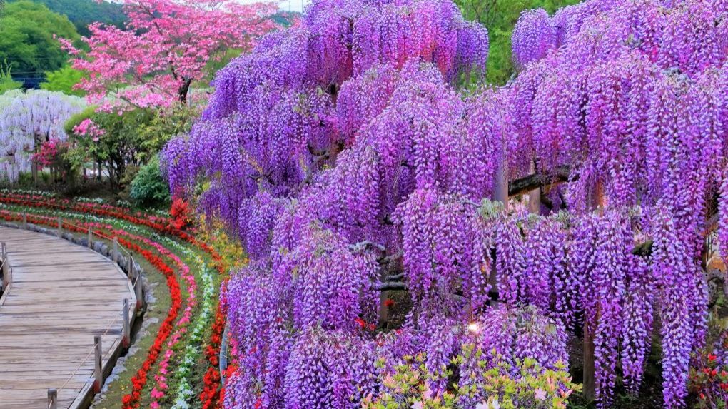 САДЫ ЯПОНИИ СКАЗОЧНЫЙ ПАРК АСИКАГА УДИВИТЕЛЬНОЕ ЦВЕТЕНИЕ ГЛИЦИНИИ О-Фудзи 2021