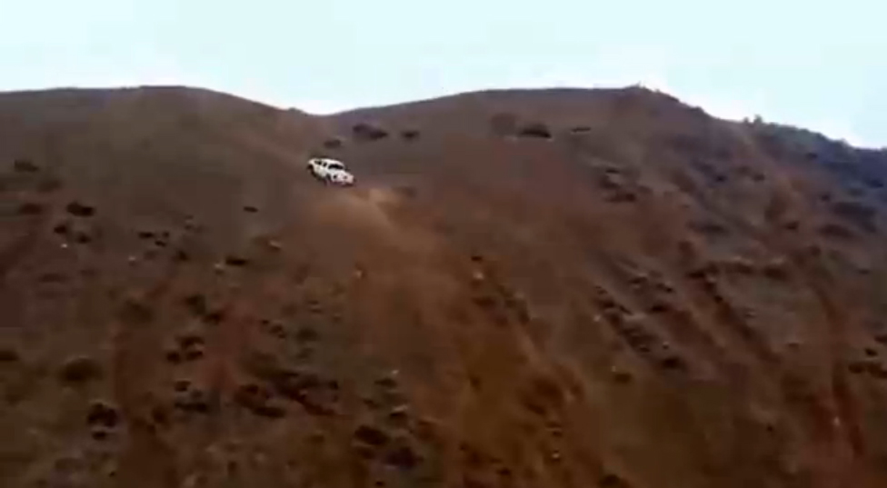 GMC Sierra покоряет крутой склон.