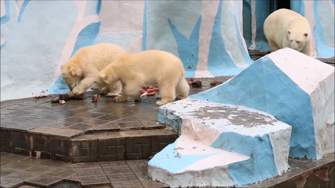 Герда родилась в Москве 20 ноября 2007 года. Её мама Симона, папа Врангель. В Новосибирск переехала 05.08.2008. В 2013 году у Герды и Кая родилась Шилка. В 2015 году она переехала в Японию. В 2015 году родился Ростик. 6 декабря 2018 года он переехал в Китай. В 2018 году родились Норди и Шайна. Сейчас они находятся в нашем зоопарке в закрытой от посетителей хозяйственной зоне. В другие зоопарки их не могут отправить. Сначала была пандемия, сейчас границы закрыты и санкции. Белые медведи Норди и Шайна содержатся в МУП «Новосибирский зоопарк имени Р. А. Шило» с рождения и по настоящее время. Данная пара молодых медведей находится вне экспозиции зоопарка, поэтому посетители не могут их видеть. Передача молодых медведей в другой зоопарк пока не планируется, — ответили на запрос редакции в пресс-центре мэрии Новосибирска. У них есть бассейн, игрушки. Их так же кормят как и раньше. Голодные не бывают. Шайна размером с маму, Норди с папу. Шайна командует Норди. Одиночные животные. Как правило, миролюбивы по отношению друг к другу, но между самцами в брачный период случаются стычки. Взрослые самцы могут нападать на медвежат. Гон с марта по июнь. Продолжительность жизни — максимум 25—30 лет; в неволе рекорд долгожительства — 42 года. Вес очень крупных самцов в некоторых частях ареала 700 и даже 800 кг: есть данные о зверях весом до 1000 кг. Обычно вес меньше. Самки всегда не только меньше, но и значительно легче самцов. Так, самцы в восточной Гренландии в состоянии нормальной упитанности весят 400—450 кг, хорошо упитанные — до 500 кг, самки, даже очень сытые, здесь же редко весят больше 350—380 кг, т. е. их вес составляет около 75% веса самцов. Длина тела на 3-й день после рождения 28—32 см, средний вес — около 755 г (650—840 г). На 26-й день длина тела увеличивается незначительно — до 35—38 см, а вес возрастает до 1125—1275 г. В возрасте 60 дней самцы весят около 7 кг, самки — около 6 кг при длине тела у первых 58—60 см, у вторых 54—58 см. В возрасте 4 месяца медвежата достигают веса 22—23 кг, в 6-месячном возрасте при длине около 110 см — 40—43 кг, в 8-месячном — 58—62 кг. Длина тела в возрасте с 6 до 9 месяцев нарастает по 6—7 см в месяц. Во время зимнего сна рост почти прекращается. В зоопарке медведей кормят утром морской рыбой, хлеб с рыбьим жиром внутри, морковь, яблоки, морская капуста. Медвежат подкармливают молоком из соски. На ужин мясо (говядина, конина, куры или индейка). Летом и осенью арбузы, дыни, ранетки, кабачки, тыквы. Когда показательное кормление летом бросают живую рыбу. 16 декабря 2022 года Герда родила 2-х медвежат. И это две девочки! Имена дали 25 июня. Медвежат зовут Стрелка и Белка. Обзор вольеров белых медведей https://www.youtube.com/watch?v=mAt_b7JD0B4&list=PLGvf0V-rAHxkpGKJaWIZIUxRKgKiqV3xZ&index=17&t=0s