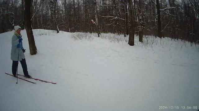 Одна женщина на лыжах.