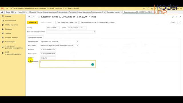 Компания «Кодерлайн» предлагает ознакомиться с роликом «Открытие и закрытие кассовой смены» Ведущая: Лисовая Анна Владимировна - специалист 1С.