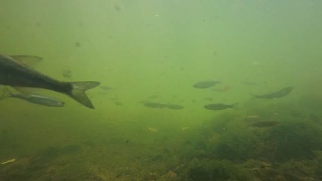 Питание Подуса колхидского [Чернопуз]. Река Якорная Щель в Сочи.