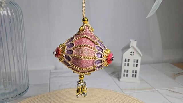 Ёлочное украшение У ШАХЕРЕЗАДЫ - ЛУКОВКА, пластик, текстиль, стразы, бусины, 15 см, S4428-2