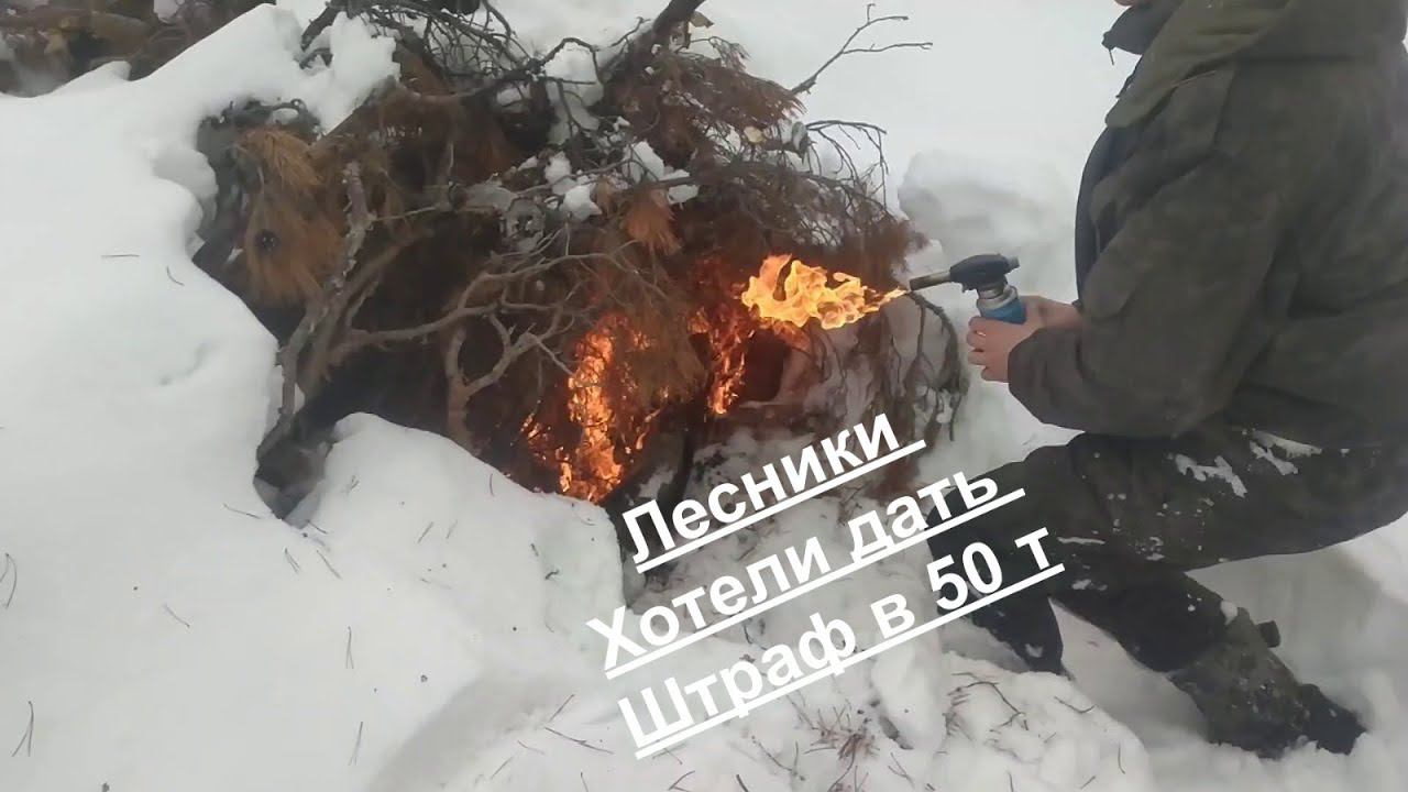 Уборка мусора в деляне зимой после заготовки леса кругляка.