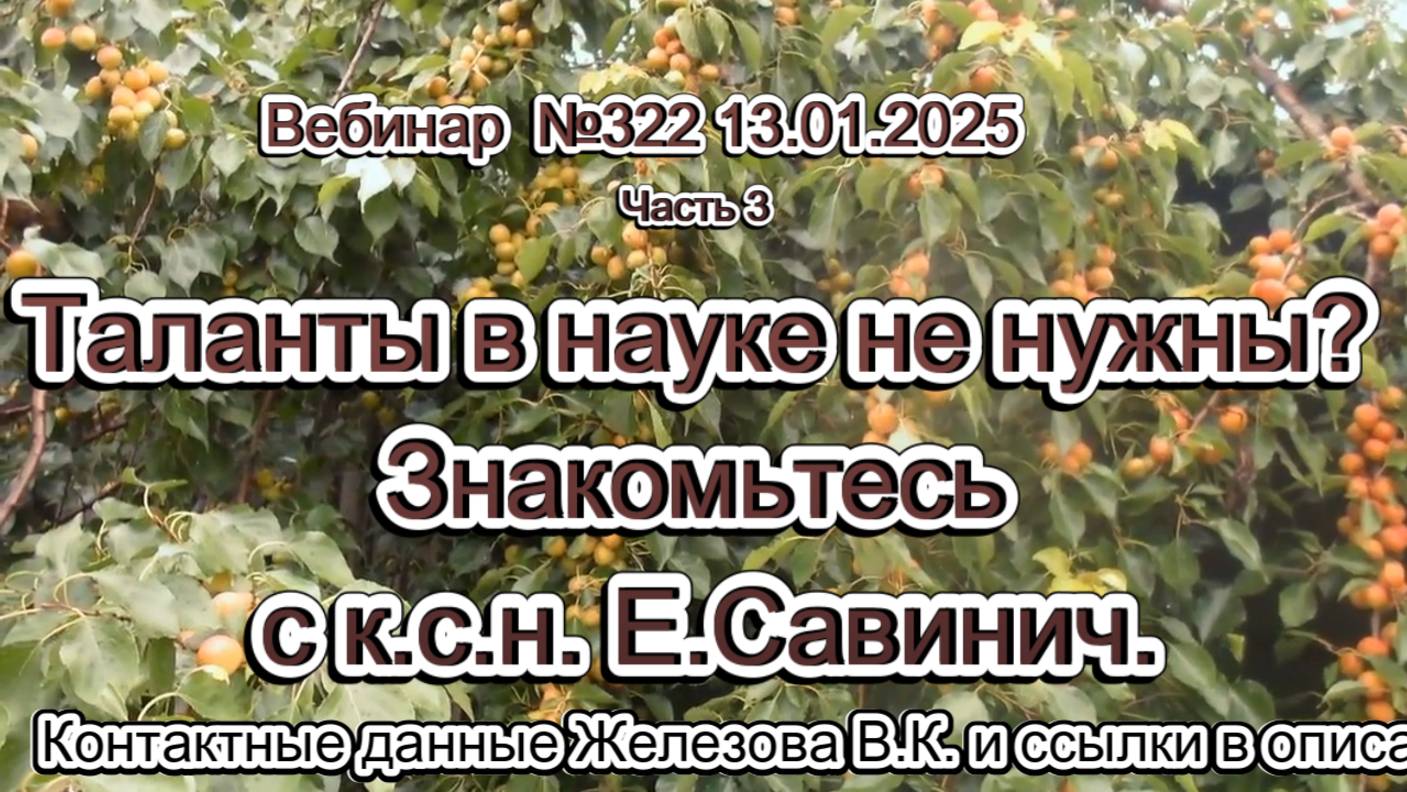 Железов Валерий. Вебинар 322. ч.3. Таланты в науке не нужны. Знакомьтесь с к.с.н. Е.Савинич.