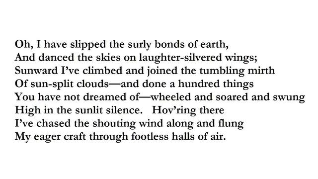 John Magee was an American who joined the Royal Canadian Air Force to fight in WWII. On December 11, 1941 at the age of 19 he died in a midair crash in his Spitfire. http://en.wikipedia.org/wiki/John_Gillespie_Magee,_Jr.