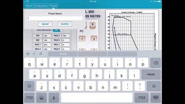 User Presets in iFly Weight and Balance for iPad
