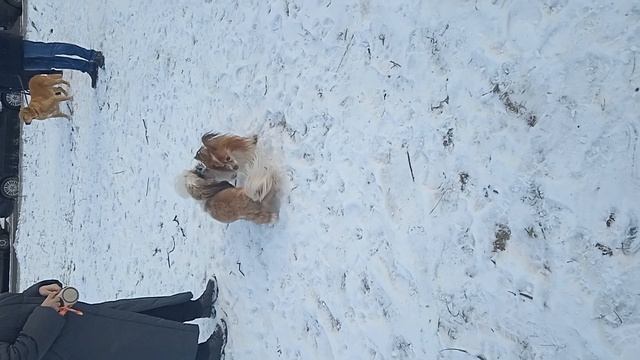 Платоша любит гулять,встретил собачку Тоня пришлось отцепить от поводка и посмотреть на игру двух собачек