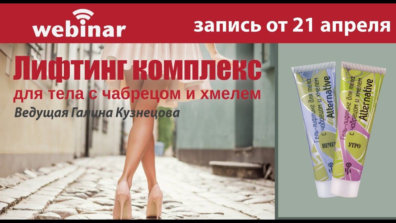 Почти каждая женщина рано или поздно начинает задумываться о лифтинге. Лифтинг борется с такими возрастными изменениями, как потеря упругости и эластичности кожи. Сейчас самое время подготовить тело к лету, заняться состоянием кожи спины, плеч, декольте. Набор «Лифтинг комплекс для тела с чабрецом и хмелем» (Артикул 70014) В набор входят два продукта: • Гель-лифтинг для тела с чабрецом и хмелем «Утро» (Артикул 15004) • Гель-лифтинг для тела с чабрецом и хмелем «Вечер» (Артикул 15005) Ведущий вебинара Кузнецова Галина Викторовна Официальный сайт «Вейра-Союз» www.veira-souz.ru Группы в соцсетях: Одноклассники: https://ok.ru/group/55331193356306 Вконтакте: https://vk.com/club140758540 Facebook: https://www.facebook.com/groups/veira.souz/