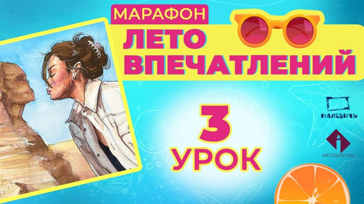 Рисуем акварельный скетч с девушкой и сфинксом! ЛЕТО ВПЕЧАТЛЕНИЙ 3 урок.