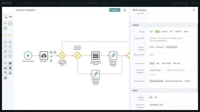 КОНСТРУКТОР МИКРОСЕРВИСОВ Микросервисы следят за изменением данных в системе: созданием записей, смены статусов, сроков, сотрудников. При наступлении событий — запускают сценарии автоматизации, которые избавляют от рутинных задач. Графический редактор сервисов Настройка микросервисов ведется в графическом редакторе. Для настройки сценария нужно выбрать компоненты, расположить и задать их свойства. Работа с записями Сервисы могут получать записи каталогов, создавать в них новые и менять данные в существующих. К примеру, получить список поставщиков, создать клиента, изменить статус заявки. Вычисления и генерации документов Сервисы могут проводить расчеты, операции с датами, текстом, файлами. К примеру, рассчитать стоимость заказа, дедлайн или сгенерировать договор. Внешние запросы (веб и БД) Сервисы могут формировать и отправлять веб-запросы к API других систем и базам данных. Создавайте интеграции. К примеру, запрос на создание счета в 1С. Создать систему самому: bpium.ru/signup Заказать систему: bpium.ru Наш блог: blog.bpium.ru