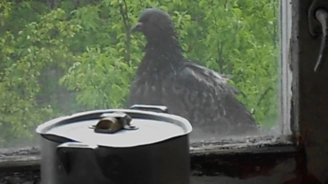 Мокрый голубь за окном в дождь. DSCN6351