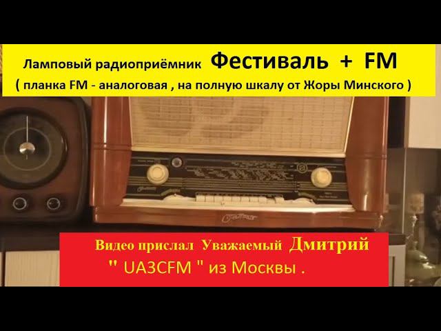 Ламповый радиоприёмник Фестиваль + FM ! Установлена планка FM на полную шкалу от Жоры Минского. Видео прислал Уважаемый Дмитрий UA3CFM из Москвы . Дима , Большое спасибо за видео )))) Просто Супер !!!!