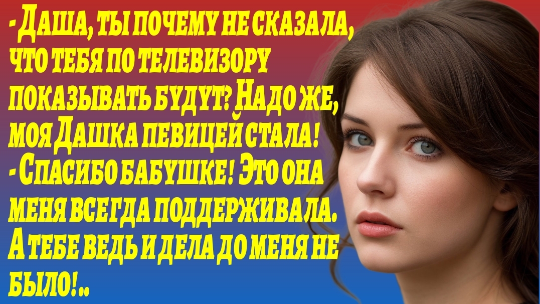 Этот рассказ рассказывает о сложных отношениях между девочкой Дашей и её семьёй, особенно с бабушкой. В центре повествования — перемены в жизни девочки после ухода родителей, появление нового мужа матери и её тяжелое состояние. В рассказе подчеркивается важность поддержки и любви, которую бабушка олицетворяет для Даши, а также её мечты стать певицей. Через воспоминания и текущие события раскрывается тема семейных ценностей, утраты и памяти о близких. В финале присутствует трогательный образ бабушки, символизирующий тепло и заботу, а также важность сохранения памяти о тех, кто был рядом. Рассказ подчеркивает, что даже в трудные времена любовь и поддержка близких помогают преодолеть любые испытания. #художественнаялитература #семейныеотношения #поддержка #любовь #утрата #семейныеценности #воспоминания #мечты #бабушка #память #жизненныеперемены #эмоции #семья #трагедия #надежда #Аудиорассказ #СемейныеОтношения #ЖестокоеОбращение #ЗащитаДетей #Видеонаблюдение #ЗаботаОДетях #ПраваРебенка #СемейнаяИстория #ВажныеТемы #ЭмоциональнаяИстория #ИсторииИзЖизни, #РеальныеИстории, #ЖизненныеИстории, #ЛичныеИстории, #ИнтересныеИстории #непридуманныеистории #поучительныеистории #жизненныеистории #втопе #семейныеистории #удивительныеистории Истории из жизни, реальные истории, жизненные истории, личные истории, интересные истории, удивительные истории, потрясающие истории, вдохновляющие истории, эмоциональные истории, истории успеха, истории любви, истории о дружбе, истории о семье, истории о путешествиях, истории о работе, истории о детях, истории о животных, истории о природе, истории о спорте, истории о культуре, истории о преодолении трудностей, истории о переменах в жизни, истории о неожиданных событиях, истории о личностном росте, истории о самопознании, истории о путешествиях по миру, истории о необычных профессиях, истории о волонтёрстве, истории о благотворительности, истории о стартапах, истории о предпринимательстве, истории о научных открытиях, истории о технологических инновациях, истории о социальных проектах, истории о культурных событиях, истории о музыкальных достижениях, истории о спортивных рекордах, истории о кулинарных экспериментах, истории о модных трендах, истории о киноиндустрии, истории о театральных постановках, истории о литературных произведениях, истории о художественных выставках, истории о научных исследованиях, истории о медицинских открытиях, истории о экологических проектах, истории о городских легендах, истории о мифах и легендах, истории о паранормальных явлениях, истории о мистических событиях. истории из жизни, аудиокнига, интересные истории, жизненные истории, про любовь, любовные истории, аудио рассказы, поучительные истории, интересные истории из жизни, рассказ, истории измен, удивительные истории, душевные истории, история о измене, истории любви, мудрые истории, новые истории из жизни, рассказы о любви, истории из жизни 2025, аудио рассказ, жизненные истории 2025, короткие рассказы, невыдуманные истории 2025, истории об измене, аудио рассказ, истории о любви, реальная история из жизни, истории для души, жизненные рассказы, аудио рассказы, удивительные истории из жизни, непридуманные истории, история о любви, увлекательные истории, аудио рассказ из жизни