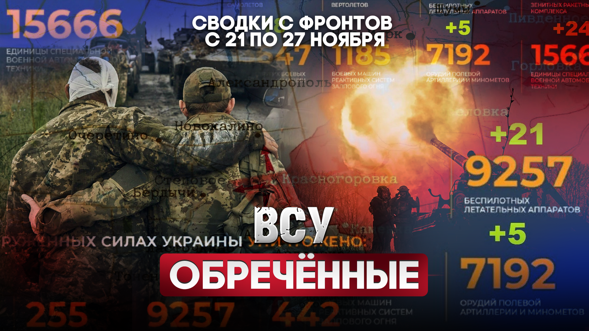 Большая фронтовая сводка с 21 по 27 ноября Друзья, мы совместно с ПолитВерой собираем средства на нужды нашей подшефной 1-ой Гвардейской Славянской бригады. Для помощи ребятам на передовой: ?Карта Сбербанк: 2202 2036 7992 1520 (Дарья) ?Донаты ВК: https://vk.com/donut/voenkorkhayrullin ПолитВера : Карта Сбербанк: 2202 2032 5969 3275 (Вера) ?Яндекс деньги: 41001310993902 ?Донаты ВК https://vk.me/moneysend/politwera Ссылка для донатов: https://www.donationalerts.com/r/politwera (тут могут участвовать друзья из Европы. ТОЛЬКО через кнопку PayPal) Огромная благодарность, что вы помогаете бойцам!