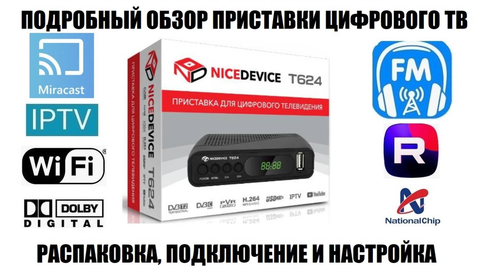 Обзор новой модели приставки для приема цифрового телевидения от компании NICEDEVICE, модель T624 Распаковка, подключение, настройка телеканалов, проверка интернет сервисов IPTV, Youtube, медиа-проигрователя, FM радио и других возможностей приёмника. Ссылка на канал в VK: https://vk.com/video/@club227713346/ Ссылка на канал Rutube: https://rutube.ru/channel/27570990/ Видео инструкция по настройка приложения SuperCast: https://youtu.be/a-WfMDFcBtY Видео инструкция по настройке сервиса DLNA DMR https://youtu.be/f5PGrIOypys Видео инструкция по настройке сервиса DLNA DMP https://youtu.be/qsrvnJIYoqM Видео инструкция по настройке приложения DVB2IP https://youtu.be/Rt2WyVc0uRY Видео инструкция по настройке приложения RSS Новости https://www.youtube.com/watch?v=BNciL88IVbs Видео инструкция по настройке приложения STALKER: https://rutube.ru/video/03c621a5ba4b85b1f7eb64ff350430e6/ Видео инструкция по настройке приложения XTREAM: https://youtu.be/oycjYdCToSo Если не работает приложение Youtube, ссылка на видео: https://youtu.be/giDbbjr8RnE