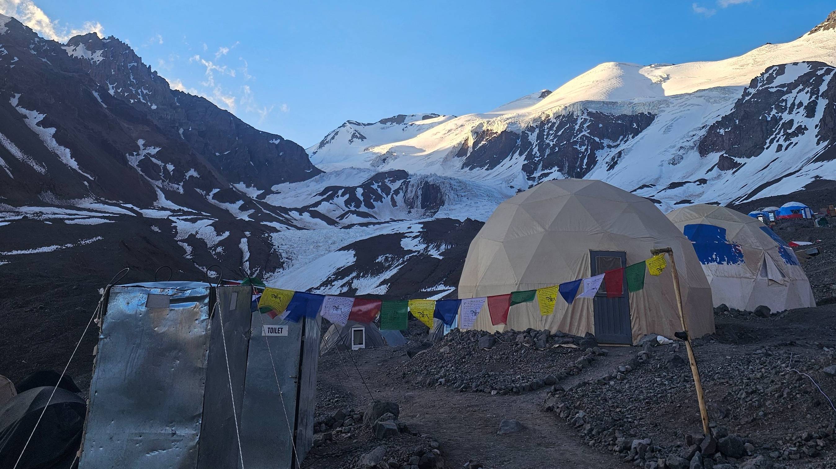 Супер-Гид Клуба 7 Вершин Андрей Березин передаёт из Аргентины: Hola! Группа "Los Hombres " совершила длительный переход из лагеря Конфлюэнция в базовый лагерь Аконкагуа - Пласа де Мулас. Прошли 18 км с набором высоты 1000 метров, за 7 часов. Такие вот сухие цифры, за которыми скрывается сила и выносливость нашей группы. Завтра отдых и небольшая прогулка по окрестностям.