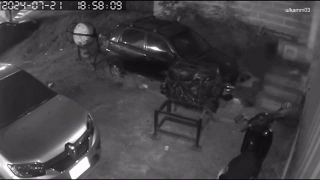 Сзади пролетает сферический объект и ударяет с такой силой, что тот вылетает из дверного прохода