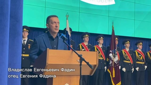 4 февраля в Колледже полиции состоялась Торжественная церемония открытия «Парты героя» - Всероссийского образовательного проекта партии «Единая Россия». Мероприятие посвящено выпускнику Колледжа полиции 2016 года, Герою Российской Федерации Евгению Владиславовичу Фадину. После выпуска он служил в ГУ МВД России по г. Москве, позже в Вооруженных Силах России. Погиб в 2023 году близ села Работино Запорожской области в ходе специальной военной операции, выполняя боевую задачу. Будучи командиром подразделения БПЛА лично уничтожил десятки единиц боевой техники противника. 4 октября 2024 года указом Президента Российской Федерации, прапорщику Евгению Фадину было присвоено звания Героя Российской Федерации посмертно. Не мероприятии присутствовали представители Колледжа полиции и почетные гости: отец Героя, полковник запаса Владислав Евгеньевич Фадин, Депутат государственной Думы Анатолий Борисович Выборный, сослуживцы и другие почетные гости. Открытие «Парты Героя» - это священный долг перед памятью тех, кто участвовал и Великой Отечественной войне, и в зоне боевых действий СВО, перед памятью Евгения Фадина. И мы обязательно позаботимся о том, чтобы это память была сохранена и приумножена в наших сердцах». Анатолий Борисович Выборный, депутат Государственной думы РФ, заместитель председателя комитета по безопасности и противодействию коррупции. «Очень важно чтить наших Героев, увековечивать память о них для будущих поколений. Поэтому хочу объявить, что моим приказом Центру подготовки внешнего пилотирования Колледжа полиции будет присвоено звание Героя России Евгения Владиславовича Фадина. А парта будет напоминать о том, что героями не рождаются, а становятся, в том числе в Колледже полиции». Сергей Васильевич Михайлов, директор ГБПОУ Колледж полиции. Своими воспоминаниями о Евгении поделились его родные и близкие, а также Лилия Вячеславовна Степанова, учитель русского языка и литературы, а сейчас педагог-организатор Колледжа полиции. Почетное право первыми сесть за «Парту героя» получили курсанты 3 курса Алиса Борисова и Александр Просветов. На первое время Парта Героя Евгения Фадина будет установлена в центральном холле, чтобы каждый курсант и гость колледжа могли познакомиться с подвигом. В последствии она будет установлена в одной из учебных аудиторий.