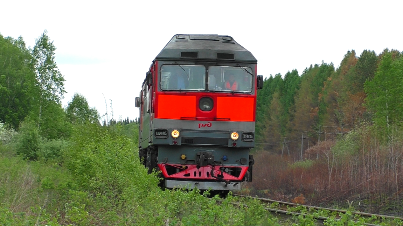 Тепловоз ТЭП70-0157 с пригородным поездом №6682 Предтурье - Алапаевск следует по перегону Бабушкино - Синячиха. Свердловская ЖД. Свердловская область, Россия. Приписка: ТЧЭ-13 Егоршино. 15.05.2020